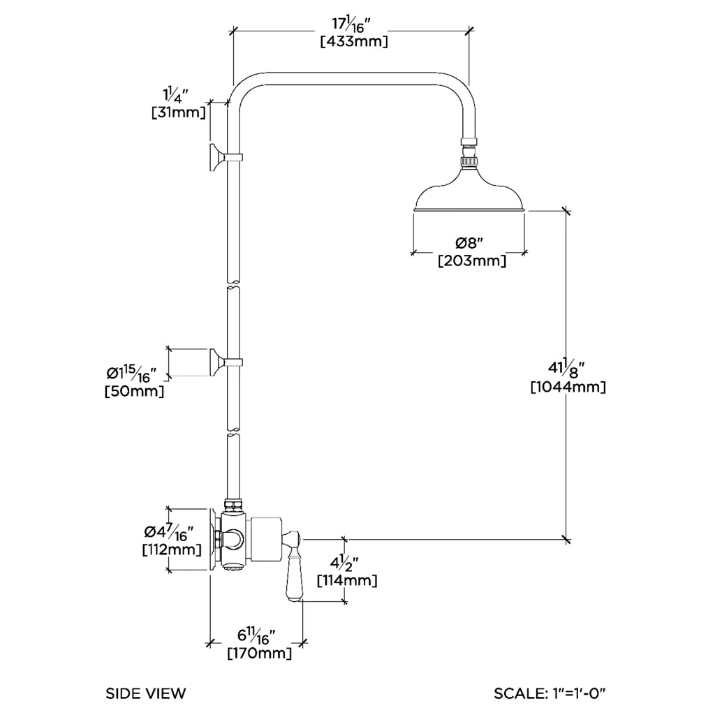 Waterworks Easton Classic Exposed Thermostatic Shower System with 8" Rainhead Showerhead and Metal Lever Handle